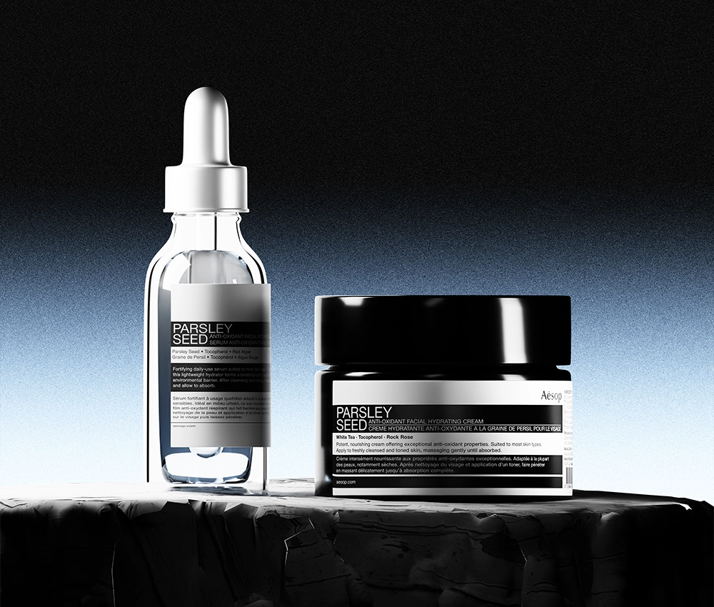 lighting, texture, and composition to evoke Aesop’s unique identity.